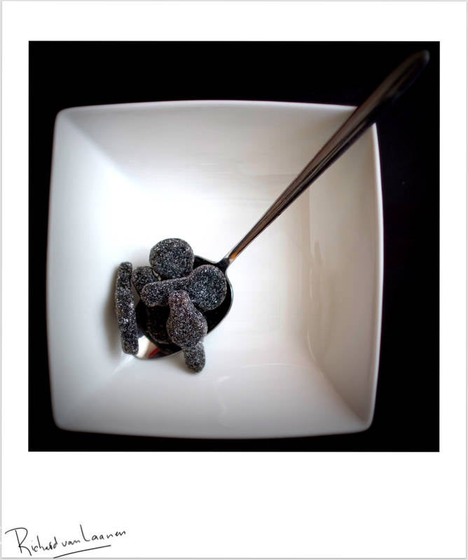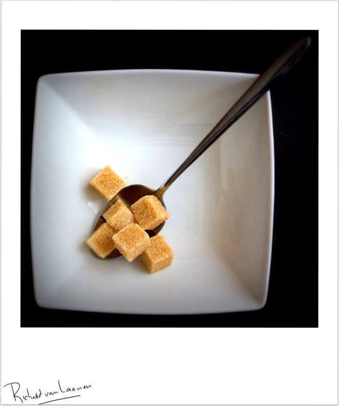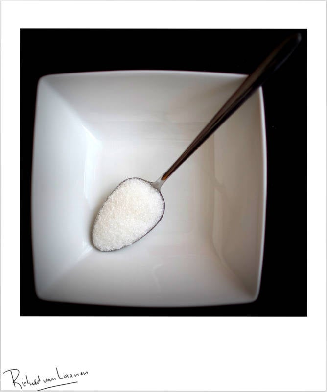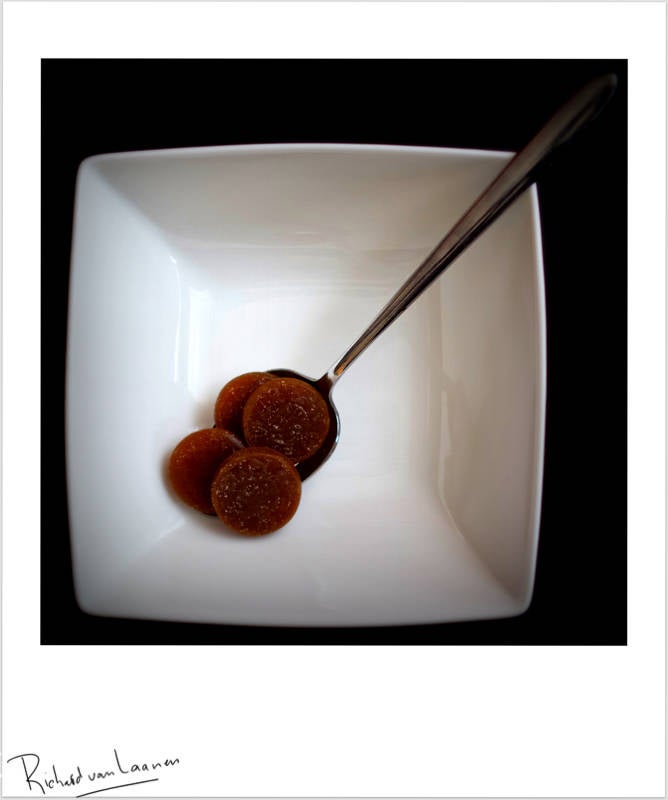 Als opdracht bij de fotocursus kregen wij van de Polodarium kalender het blaadje van onze verjaardag om op te reageren. Ik heb de titel gebruikt "A spoon full of sugar" om de volgende serie te maken. De eerste foto's zijn de voor- en achterkant van het kalenderblaadje.